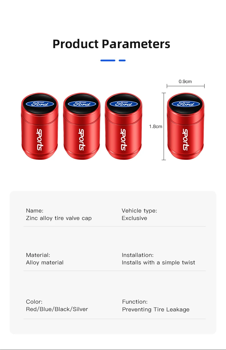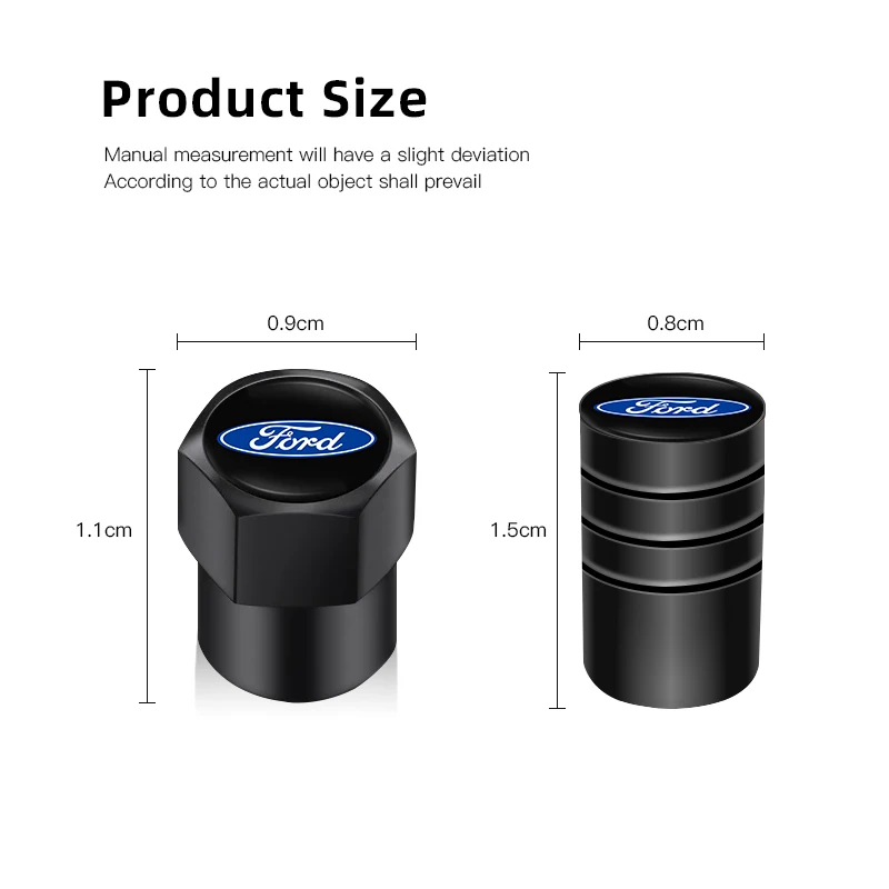 4Pcs 3D Aluminum Alloy Car Wheel Tire Air Valve Dust Caps For Ford Focus Fiesta Shelby Edge Mondeo Explorer Transit Ranger Escape Puma Kuga MK2 MK3 Mk4 Mk8 Mustang MAX F150 MK7 Ecosport Fusion Taurus GHIA